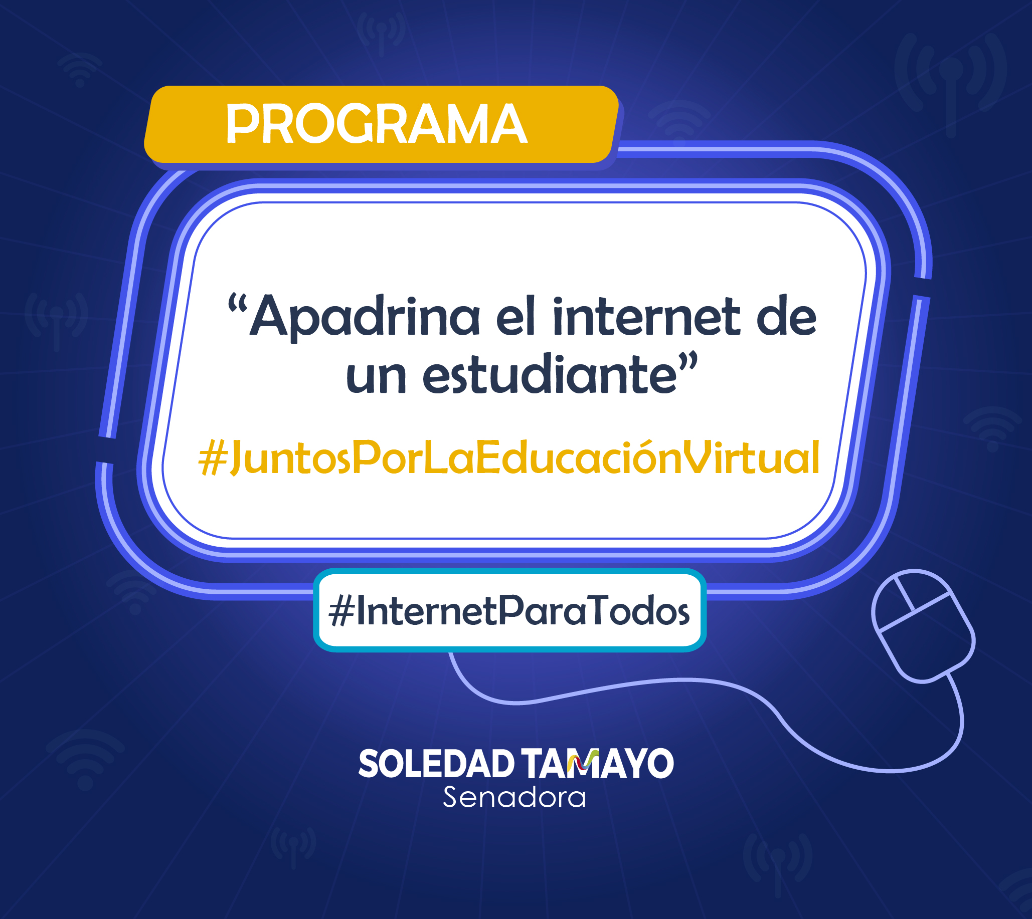 Bogotá D.C., 19 de mayo de 2020 (Prensa s. Soledad Tamayo).- En Colombia sólo el 52.9% de los hogares cuentan con Internet, situación que en plena emergencia, abre aún más la brecha de desigualdad educativa. Por eso la Senadora Soledad Tamayo, del Partido Conservador, propone al Gobierno Nacional crear el programa “apadrina el internet de un estudiante” una iniciativa para que entre todos aportemos a mejorar las condiciones de estudio virtual de nuestros niños, niñas y jóvenes en medio de la emergencia.