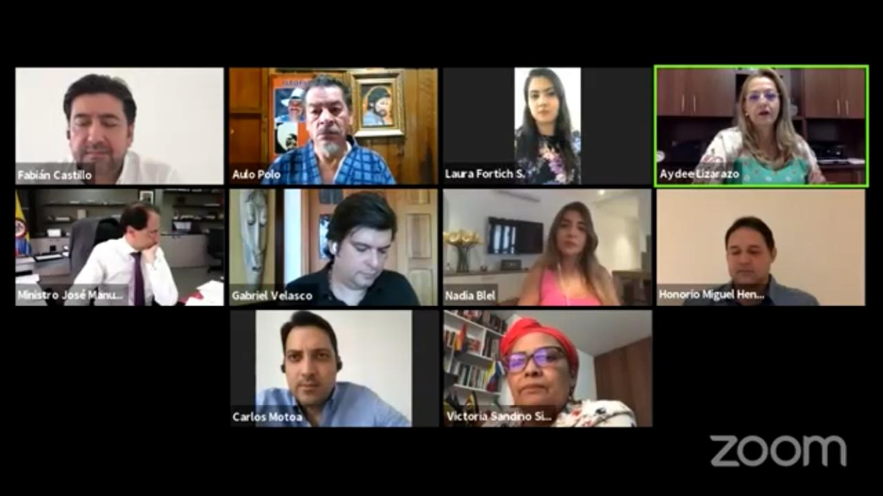 Bogotá D.C., 21 de abril de 2020 (Prensa Senado). El Ministro de Comercio y representantes de Cotelco, ACOLAP, Fedepalma, Fonturcol y Bancoldex, intervinieron en la sesión formal virtual de la Comisión Séptima del Senado, que se prolongó por cuatro horas, acerca de la crisis que afrontan estos sectores del país a raíz de la pandemia del Covid-19, tras considerar que la reactivación de la llamada industria sin chimenea sigue siendo incierta.