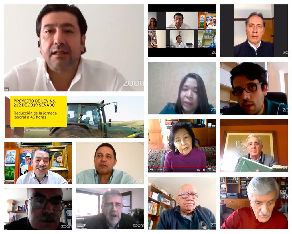 Bogotá D.C., 14 de mayo de 2020 (Prensa Senado). Los congresistas de la Comisión Séptima del Senado realizaron un foro virtual con ocasión del proyecto de ley “por medio del cual se reduce la jornada laboral semanal de manera gradual, sin disminuir el salario de los trabajadores y se dictan otras disposiciones”. Iniciativa de la que es autor el senador Álvaro Uribe Vélez, del partido Centro Democrático.