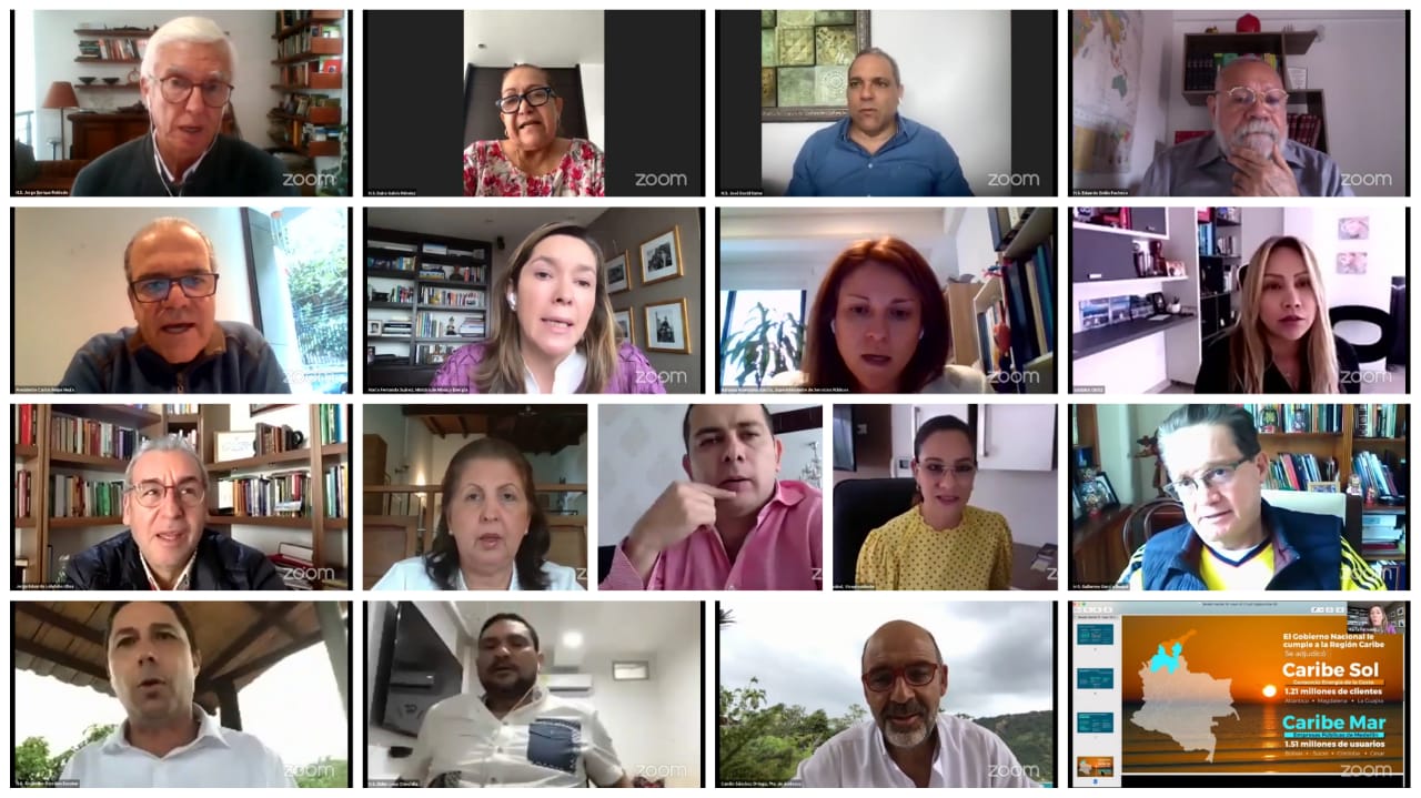 En la sesión virtual de la célula legislativa participaron la ministra de Minas y Energía, María Fernanda Suárez; la superintendente de Servicios Públicos, Natasha Avendaño; la Agente Interventora de Electricaribe, Ángela Patricia Rojas y el presidente de la Asociación Nacional de Empresas de Servicios Públicos y Comunicaciones (Andesco), Camilo Sánchez.