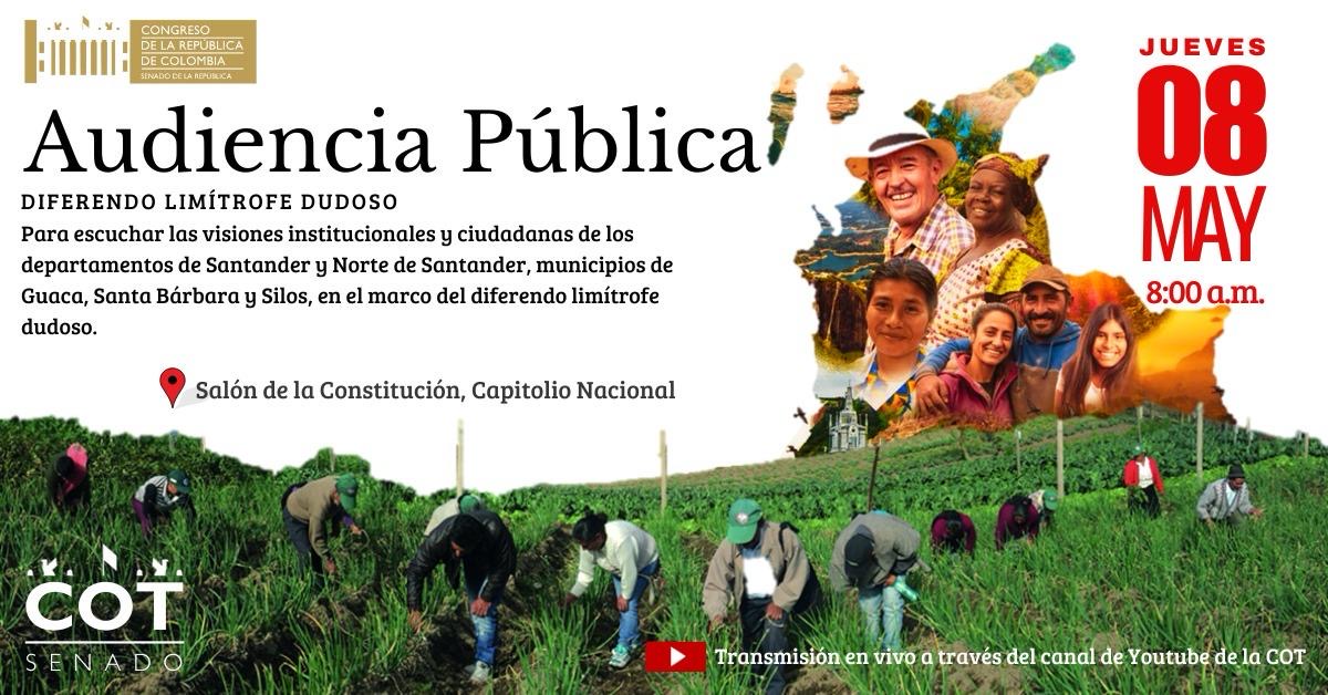 El próximo jueves 8 de mayo se llevará a cabo una audiencia pública en el Salón de la Constitución del Capitolio Nacional, convocada por la Comisión de Ordenamiento Territorial del Senado de la República.