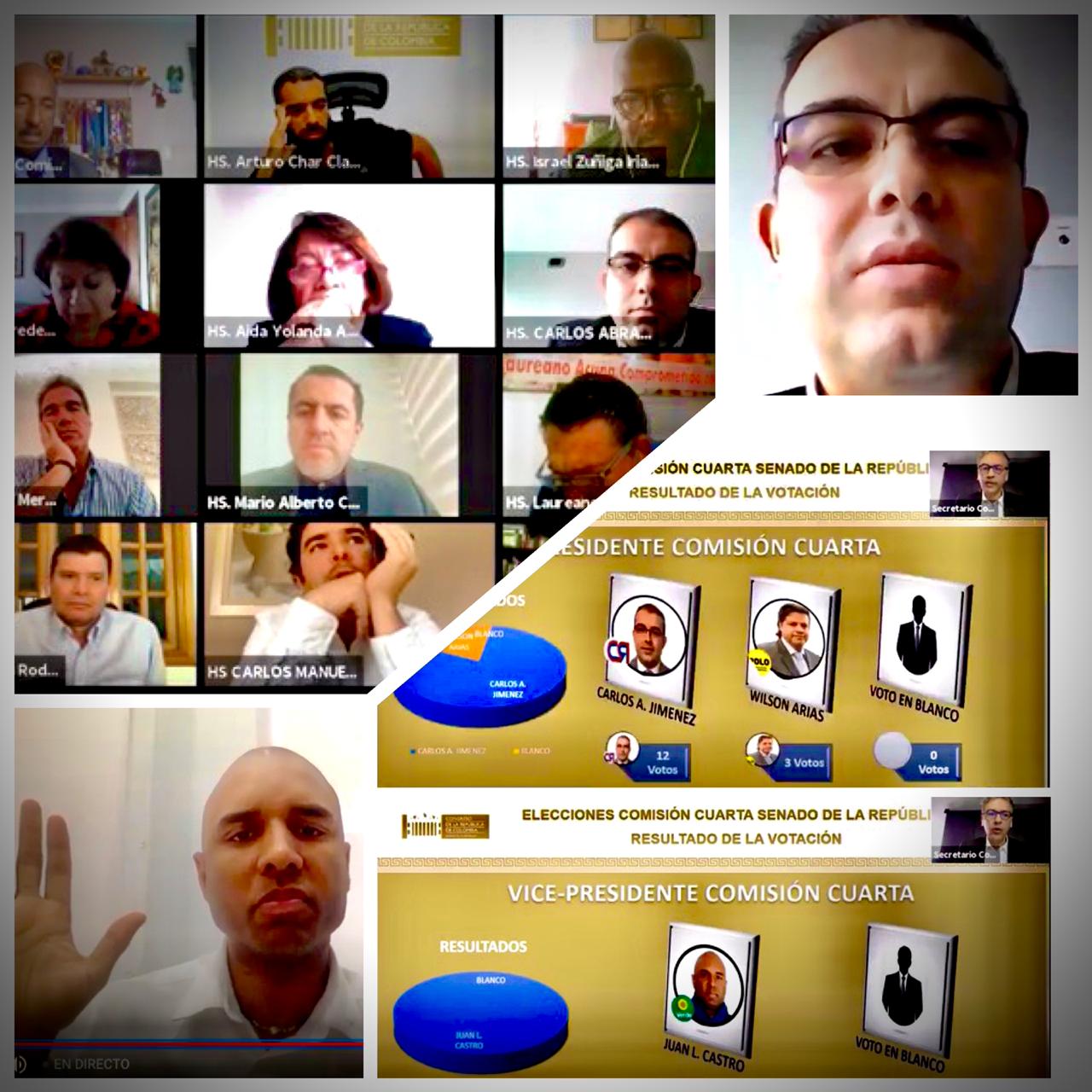 Bogotá D.C., 22 de julio de 2020 (Prensa Senado). En sesión virtual de la Comisión Cuarta se eligió su nueva Mesa Directiva, para el período julio 2020- 2021. La comisión escrutadora, estuvo integrada por los senadores John Milton Rodríguez, Aída Avella y Myriam Paredes, quien confirmó la votación obtenida para la elección de los congresistas.
