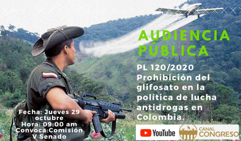 Bogotá D.C, octubre 28 de 2020 (Prensa senador Guillermo García Realpe).-Como antesala al debate del proyecto de ley 120 de 2020 por medio del cual se prohibiría en Colombia el uso del glifosato para combatir los cultivos ilícitos, la Comisión Quinta del Senado ,aprobó una proposición para que en esa célula legislativa se realicen tres audiencias públicas con diferentes temáticas antes de darle trámite a la iniciativa.