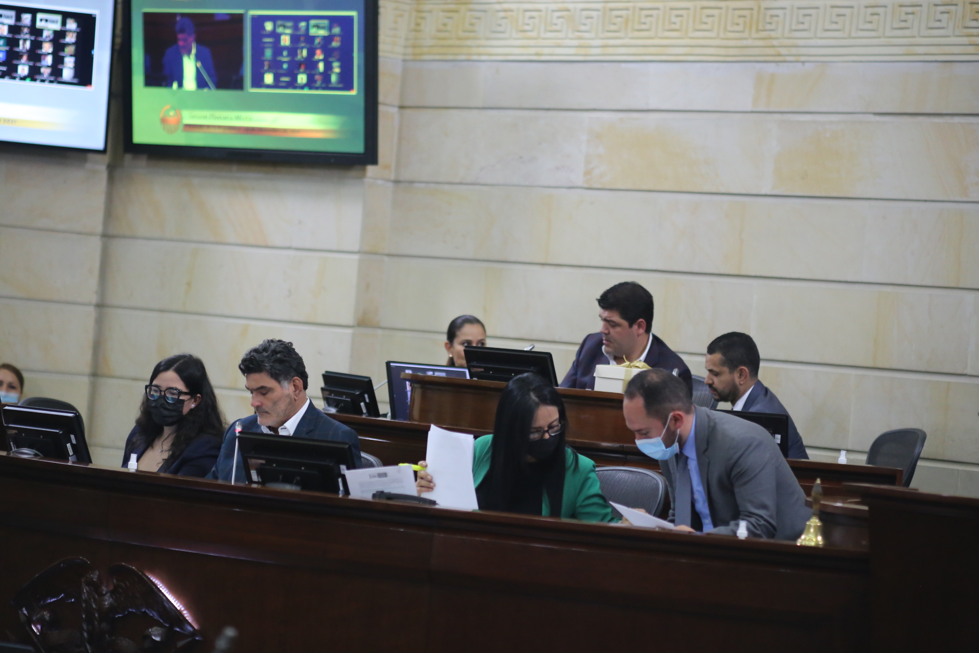 La sesión avanzó con la votación del primer bloque de artículos, los cuales no contaban con proposición (46 artículos) siendo aprobados con un resultado de 70 por el sí y 21 por el no.