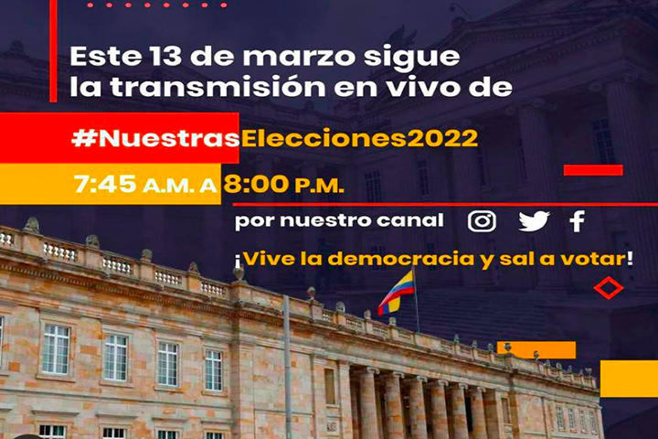 Bogotá D.C, marzo 8 de 2022 (Prensa Senado). Desde las 7 y 45 de la mañana del domingo 13 de marzo, el Canal Congreso transmitirá en vivo la jornada electoral en las que se elegirán a los nuevo senadores y representantes a la Cámara, y en la que los colombianos podrán participar en tres consultas presidenciales para elegir su candidato.