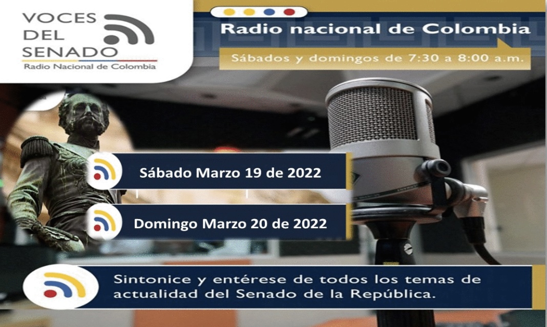 Congresistas de distintos partidos políticos nos acompañarán este fin de semana en la transmisión del programa institucional “Voces del Senado”, donde estaremos hablando de diferentes temas de impacto e interés para los colombianos: