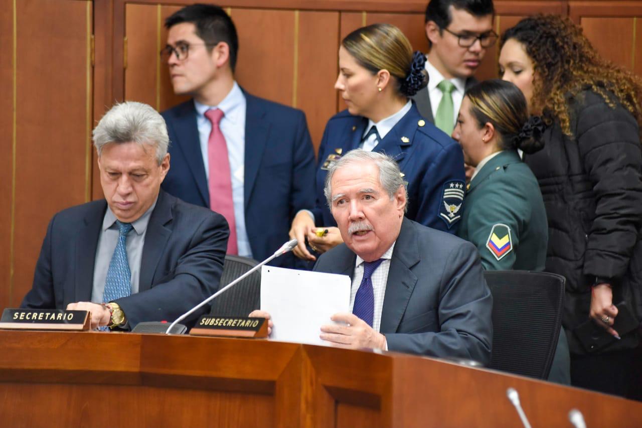 En su intervención, el ministro de Defensa, Guillermo Botero, manifestó que esa cartera tenía un presupuesto de 33.5 billones de pesos y para el 2020, tendrán 35.3 billones. Expresó que se requieren 500 mil millones de pesos para gastos de funcionamiento. Además, indicó que las Fuerzas Armadas tienen 722 aviones, 55 mil vehículos, comedores, artefactos marinos, que requieren renovación. Botero solicitó más presupuesto para el cumplimiento de sus funciones.