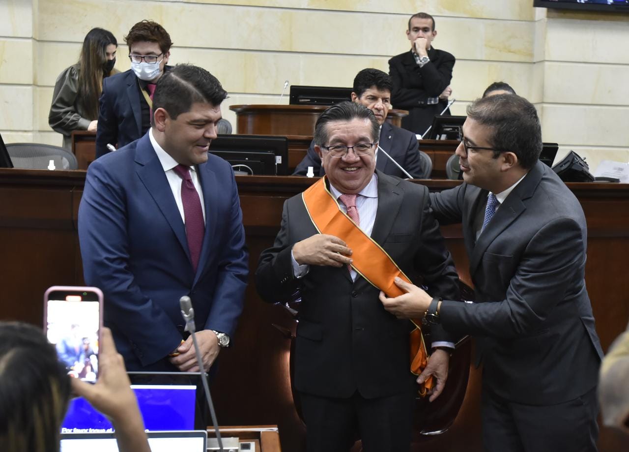 Bogotá, D.C., junio 1 de 2022 (Prensa Senado). El Senado de la República en cabeza de su presidente el senador Juan Diego Gómez, condecoró al ministro de Salud y Protección Social, Fernando Ruiz Gómez, con la Orden del Congreso de Colombia en el grado de Gran Cruz con placa de oro, por sus compromiso al frente de esta cartera y en el manejo que se le dio a la crisis sanitaria generada por la pandemia del COVID- 19.