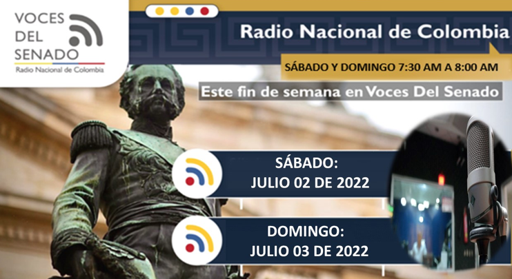 Que se transmite por las 53 frecuencias de la Radio Nacional de Colombia, los días sábados y domingos de 7:30 am a 8:00 am, además nos encuentran en nuestras redes sociales de Facebook (senado Colombia), Twitter e Instagram (@senado.gov.co), YouTube (voces del senado) y en nuestra aplicación (mi senado).