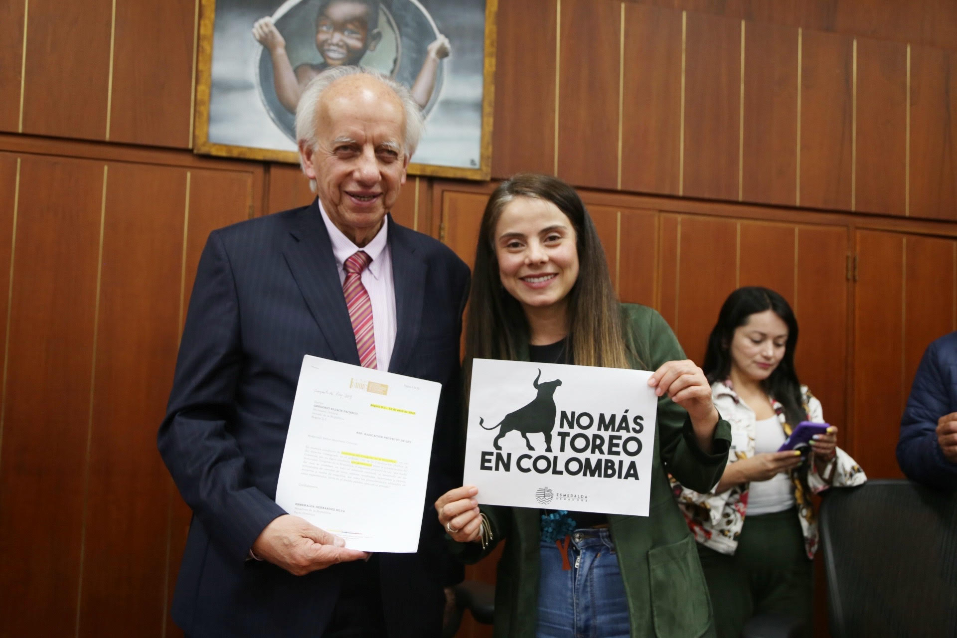 Bogotá D.C., abril 26 de 2023 (prensa senado).- Con el respaldo del Gobierno Nacional se radicó en el Senado de la República el proyecto de ley No. 309 de 2023 a través del cual se suspende y prohíbe definitivamente la realización en toda la república de Colombia las corridas de toros y sus prácticas subyacentes como novilladas, becerradas, tiendas, suelta de vaquillas y rejoneos.