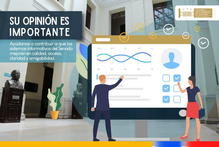 Bogotá, D.C., abril 27 de 2023 (OIPS).- En una encuesta de ocho (8) preguntas que no tardará más de 5 minutos en responder. Usted puede contribuir a que los sistemas informativos del Senado mejoren en calidad, acceso, claridad y amigabilidad. Estará disponible a partir de hoy y durante ocho (8) días.