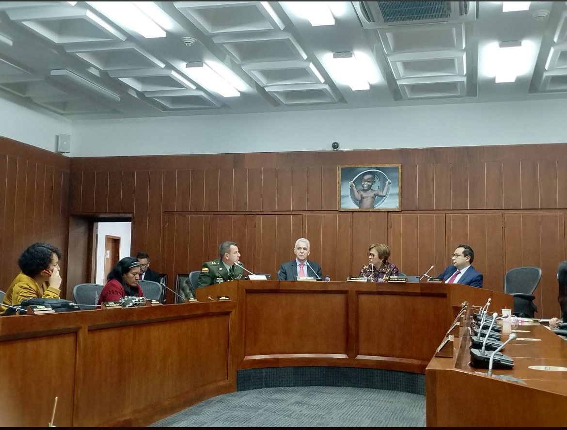 Alberto Lara, viceministro de Defensa, Vladimir Rodríguez, director de Seguridad Ciudadana y el general de la Policía José Ramírez, lideraron la exposición que fue moderada por la senadora de la Coalición Pacto Histórico, Jahel Quiroga Carrillo, presidenta de la Comisión de Derechos Humanos.