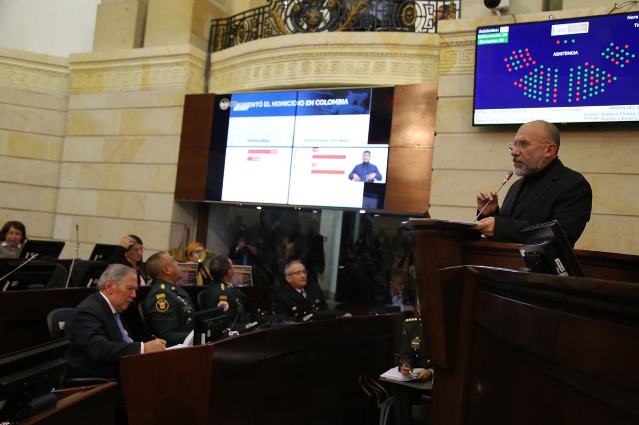 El debate arrancó con una dura intervención del senador citante Roy Barreras, quien criticó y calificó como “un fracaso” la política de seguridad ciudadana. “El 44% de los colombianos se siente inseguro. Aumentó el homicidio en Colombia, que es por supuesto la cifra más relevante, porque es la pérdida de vidas, al pasar de 8.434 entre enero y septiembre de 2018, a 8.612 en el mismo periodo de 2019; fracasó en el control del homicidio. Los hurtos también aumentaron un 9,5 %”, dijo.