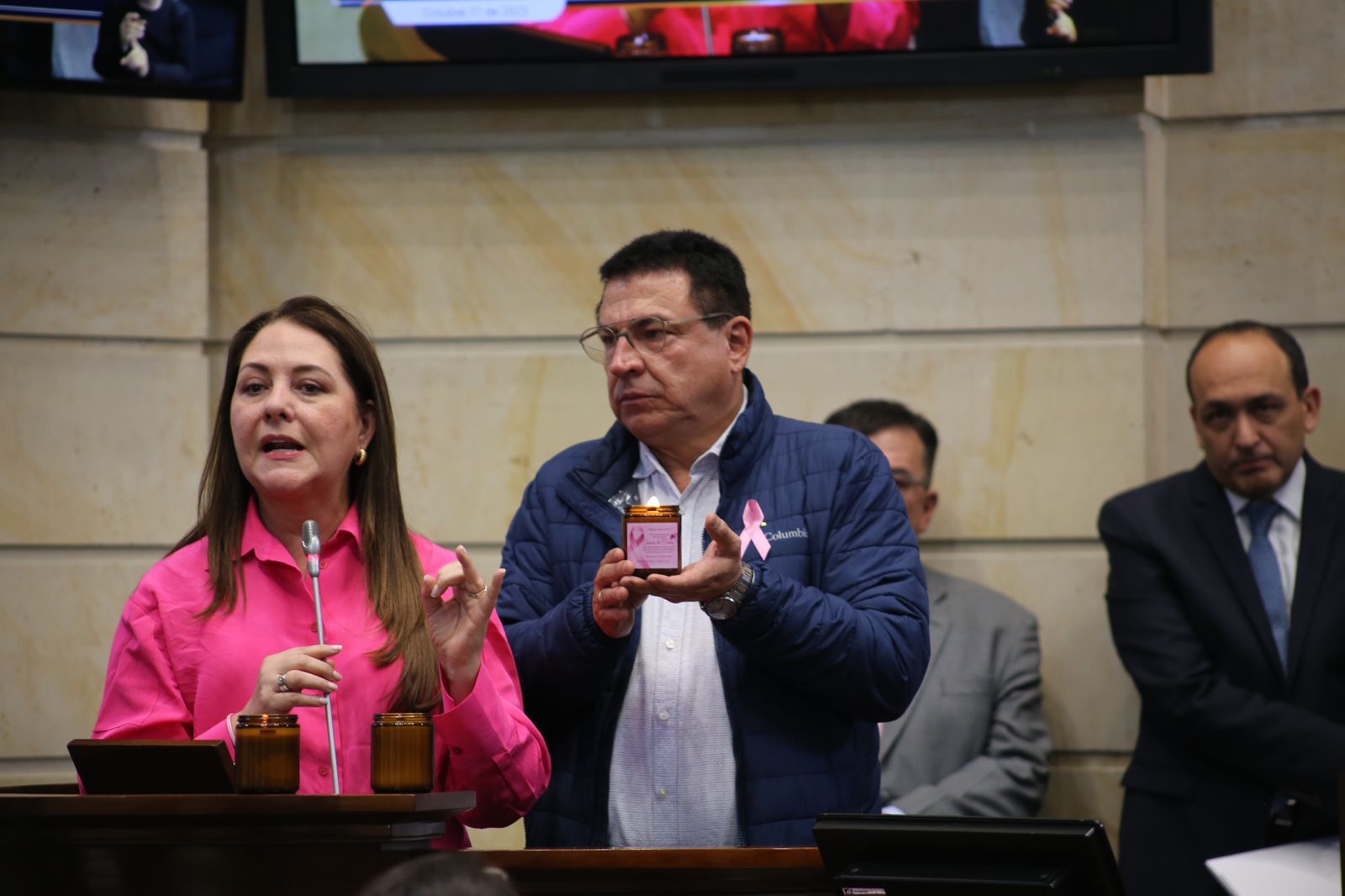 En la Plenaria del Senado, la congresista organizó un acto conmemorativo, donde los congresistas portaron un lazo rosado alusivo a la fecha. Se pidió un minuto de silencio y se encendió una vela en honor a todas las personas que han perdido la vida por la enfermedad.