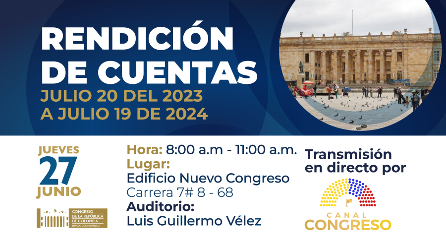 La rendición de cuentas se realizará en el salón Luis Guillermo Vélez del Edificio Nuevo del Congreso, desde las ocho de la mañana.