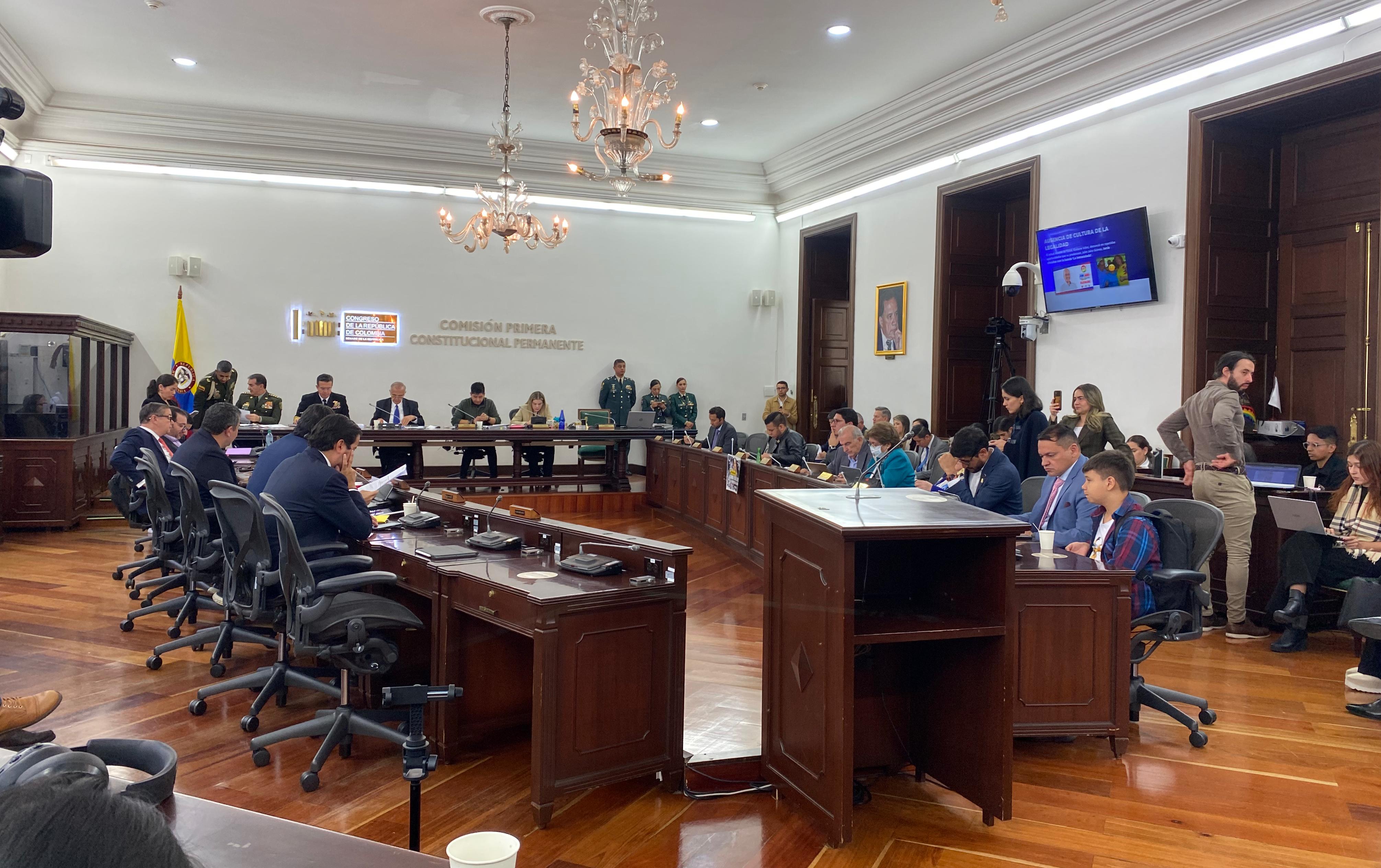 Iniciando el senador Carlos F. Motoa esbozó algunas de las razones por las cuales se está agravando la situación de orden público entre las que resaltó la fallida política antidrogas, la fracasada política de paz total del gobierno, los pocos avances en las mesas de negociación y la desfinanciación del sector defensa, esto último por los recursos dado con el último presupuesto avalado para esta cartera.