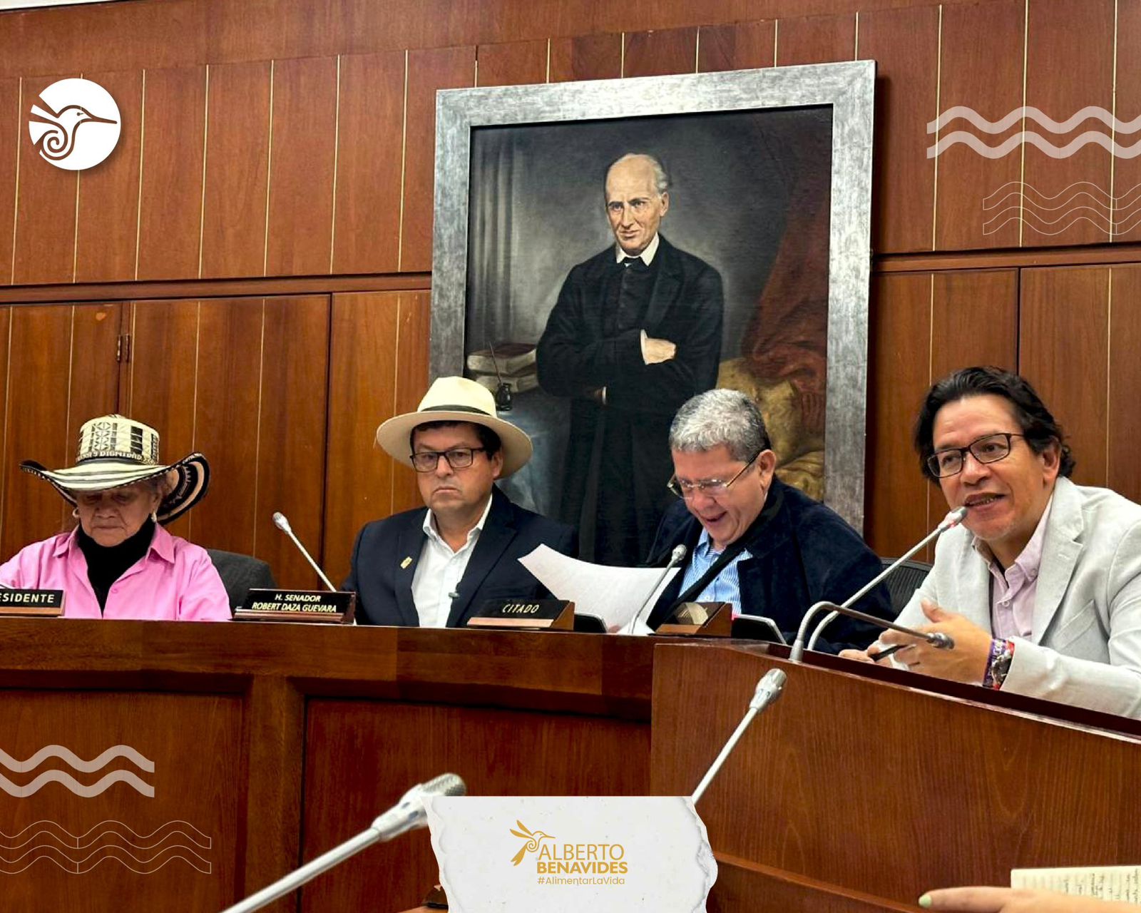 También señaló el senador Benavides lo siguiente: “Y por eso el segundo paso después del plan de desarrollo con el esfuerzo y el liderazgo del senador Robert Daza fue por fin que pudiéramos transformar el art 64 de la constitución, donde recogemos esa multidimensionalidad de la vida campesina. Territorio, cultura, producción y poder, como parte de esa síntesis que hay que ir logrando y por eso una serie de temas a desarrollar”.