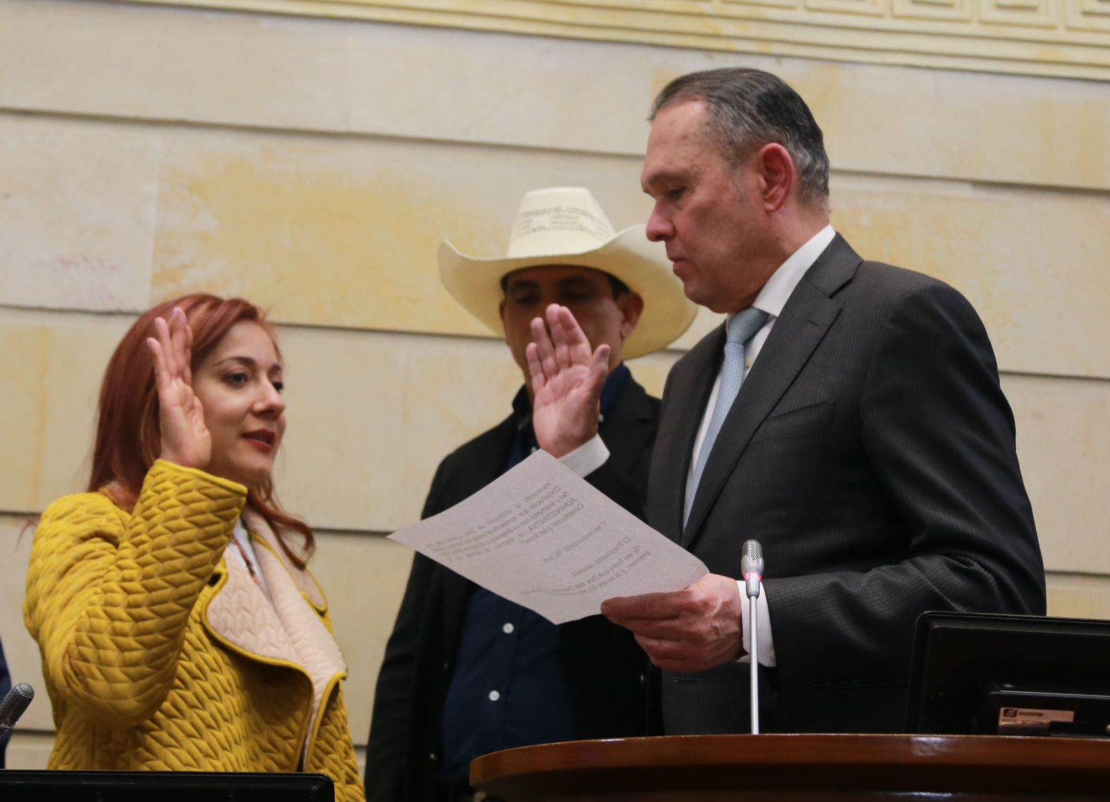 Después de juramentarse ante el presidente del Senado, Efraín Cepeda, Salamanca agradeció el voto unánime en su favor: “A todos ustedes gracias por su voto de confianza, gracias, gracias, gracias”.
