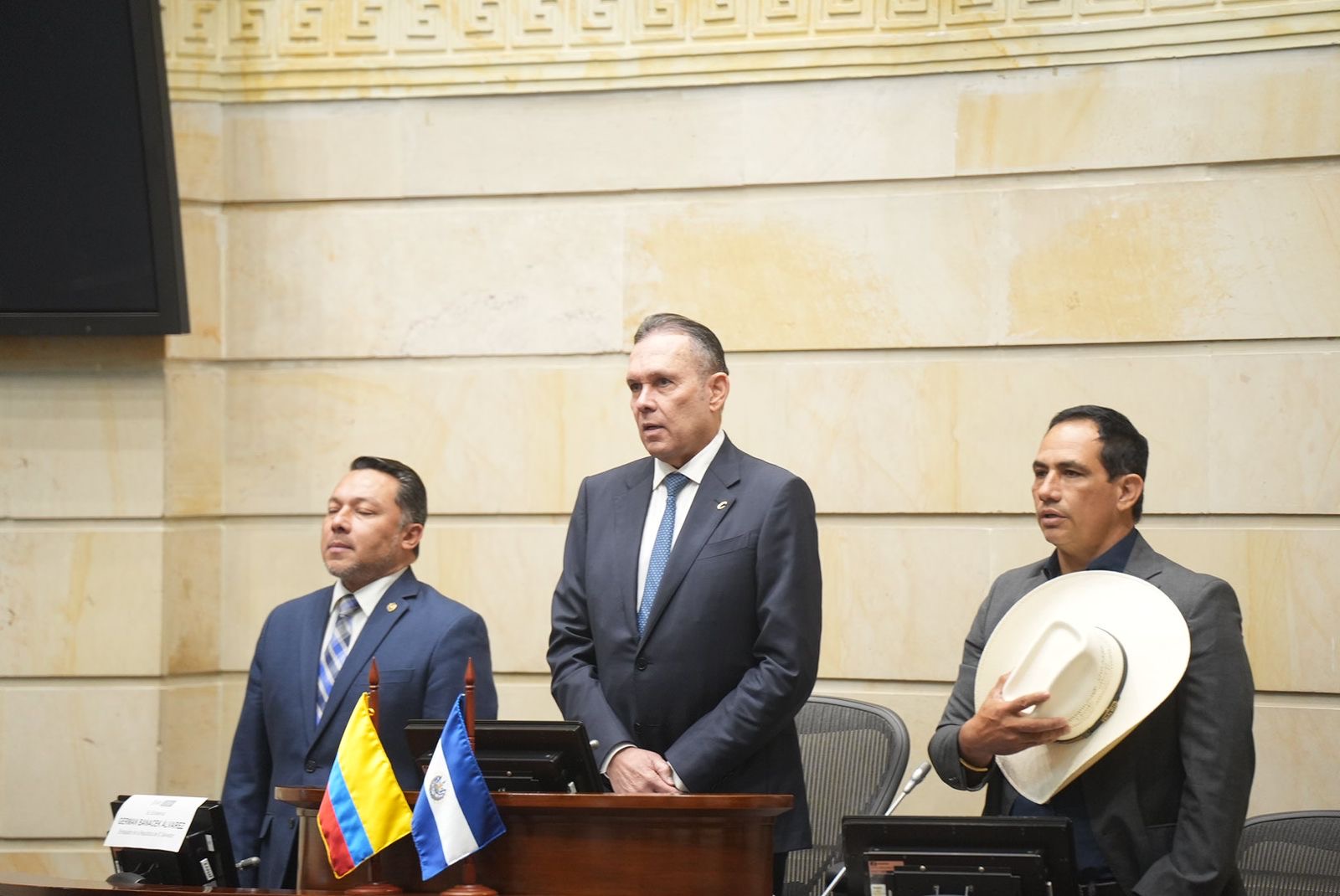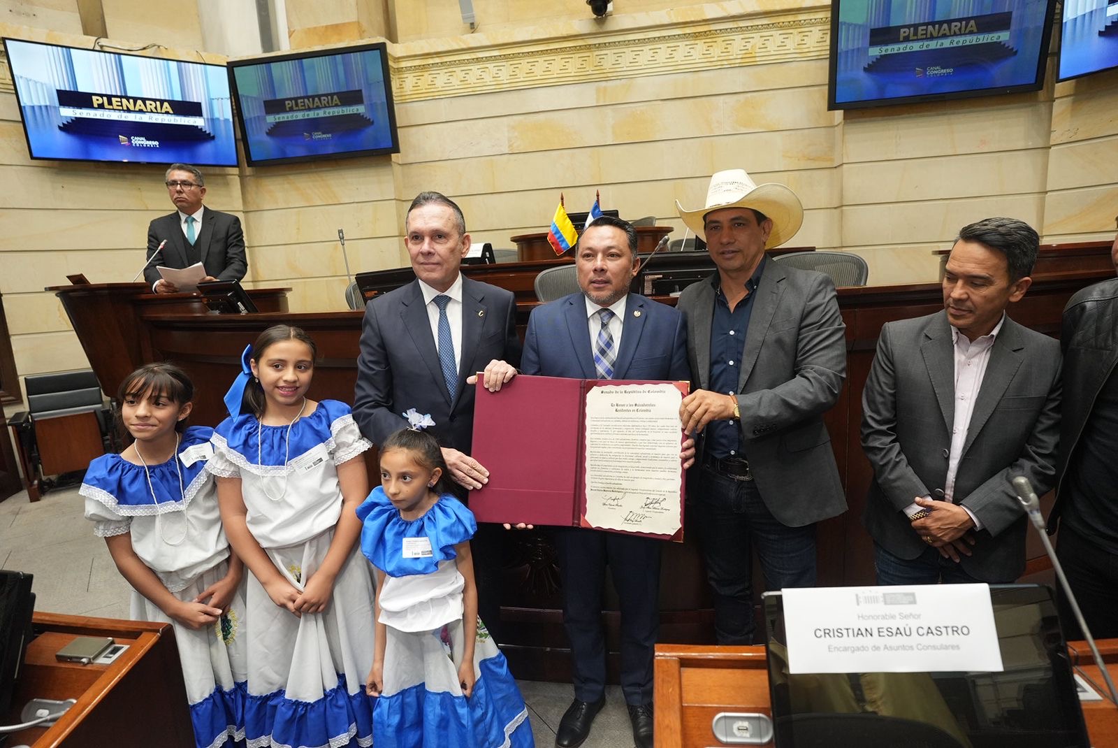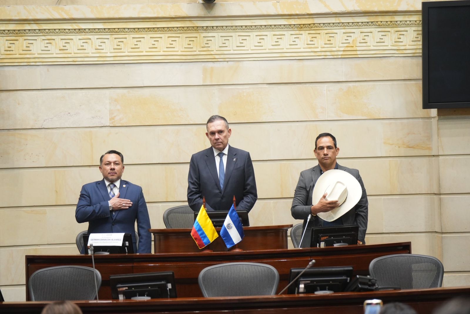 El presidente del Senado, Efraín Cepeda, acompañado del vicepresidente Alirio Barrera, condecoró al embajador de El Salvador, German Banacek Álvarez, en el marco de la conmemoración del Día Nacional del Salvadoreño en el Exterior.