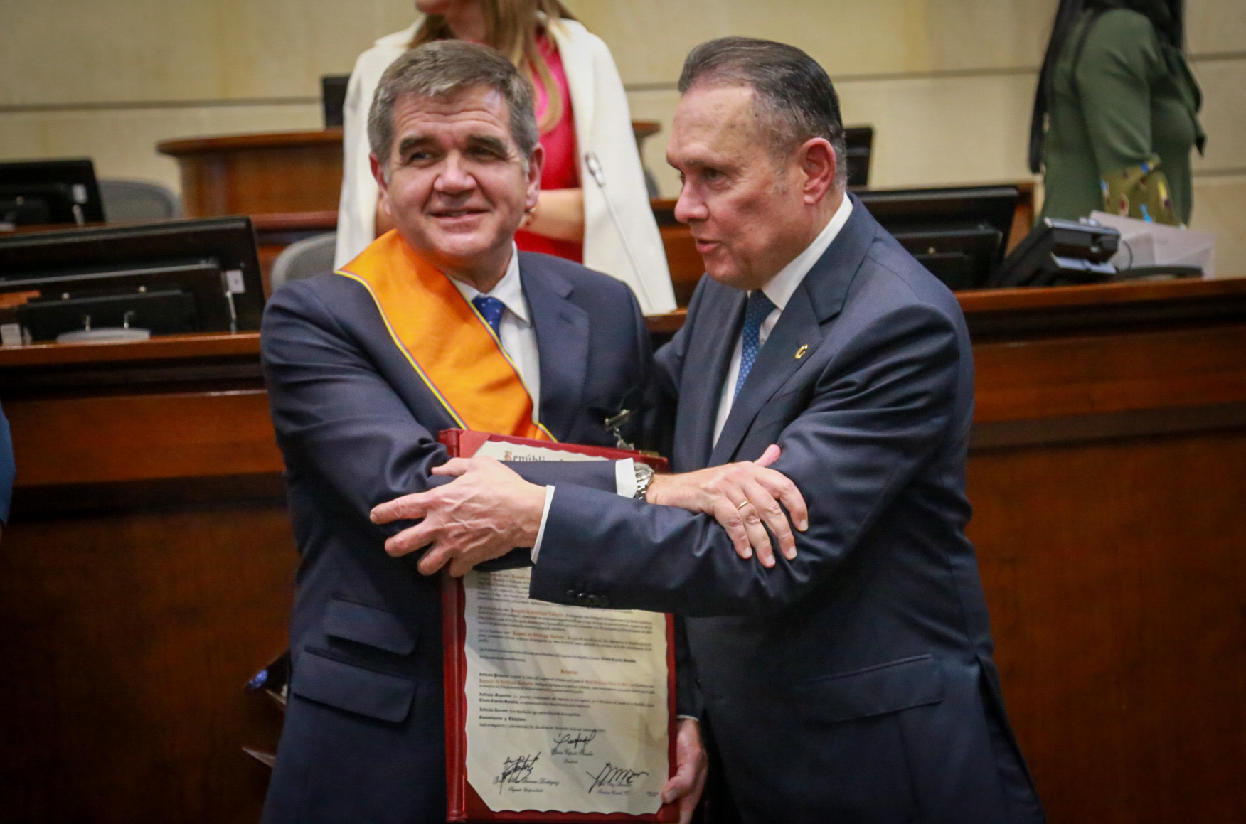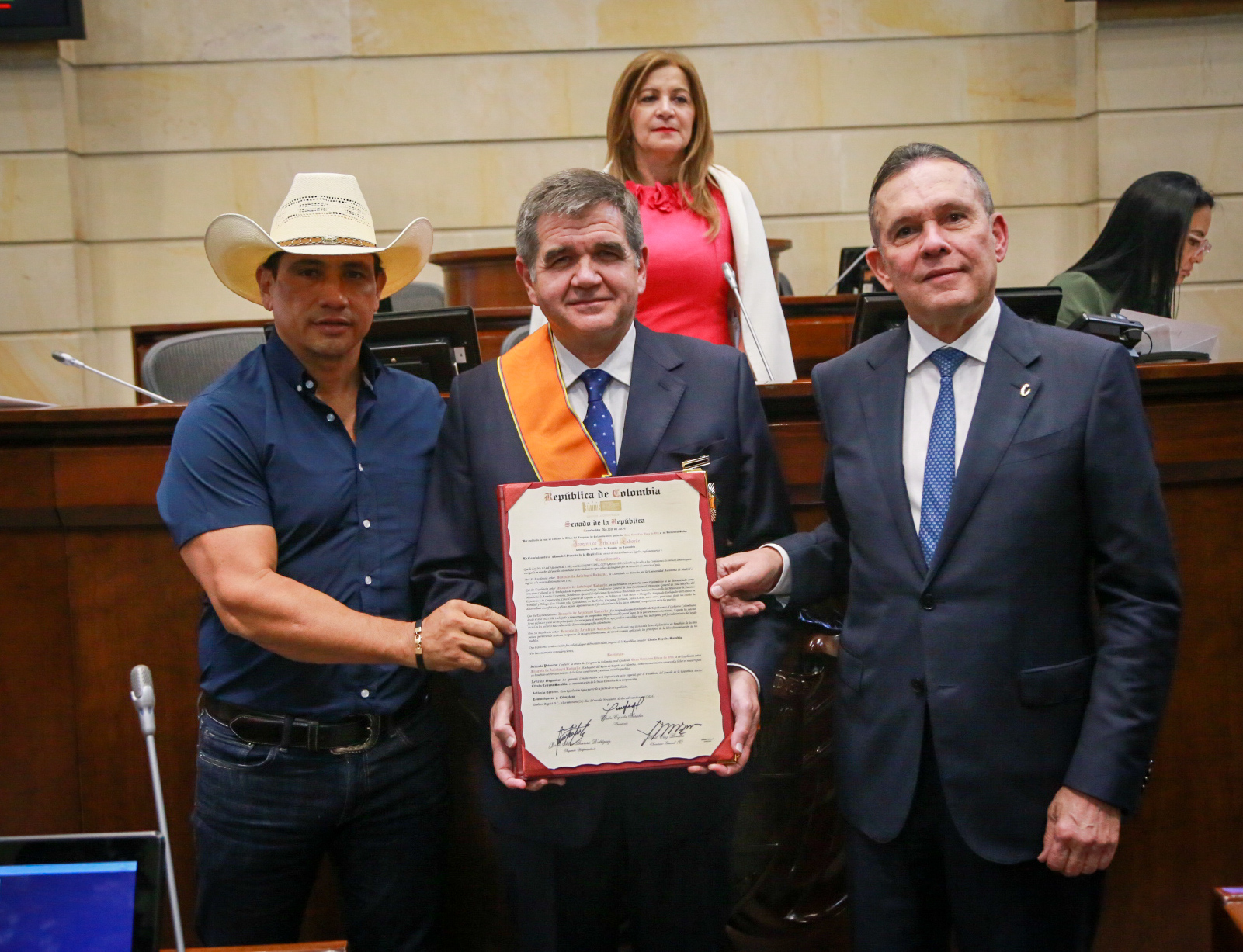 El presidente del Senado, Efraín Cepeda, acompañado del segundo vicepresidente, Alirio Barrera, condecoró al embajador de España, Joaquín María de Arístegui Laborde.