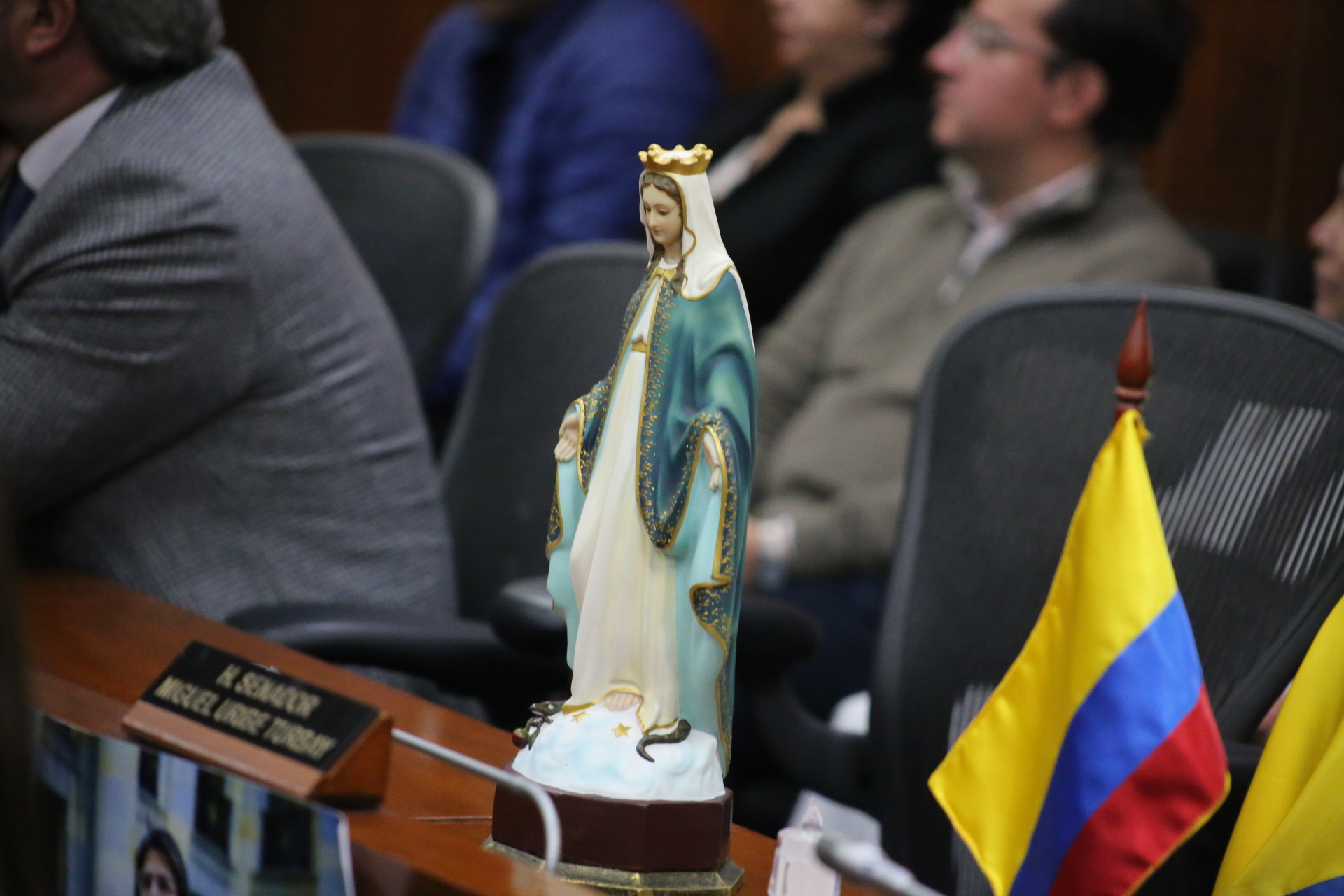 En su curul en la Plenaria del Senado reposa una bandera de Colombia e imágenes en las que se lee “¡Fuerza Miguel!”, una de las frases que ha sido enarbolada por varios congresistas y ciudadanos del común en diferentes rincones del país.