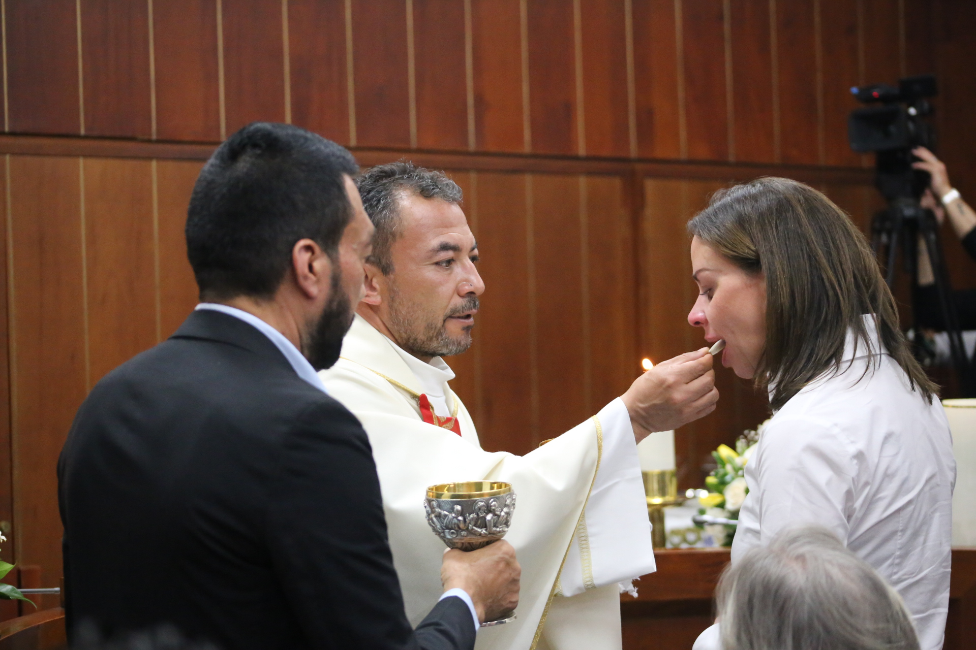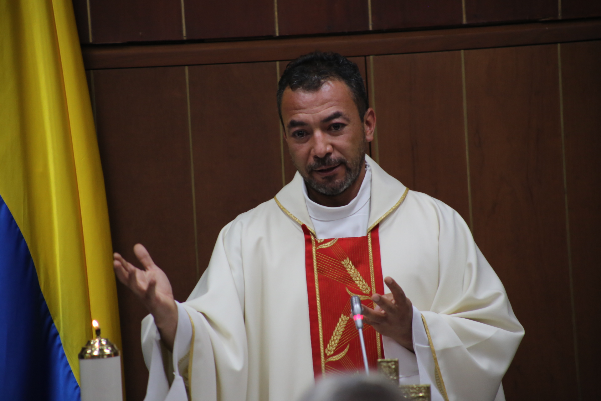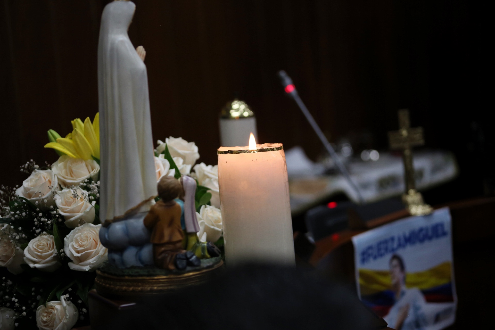El sitial de la Mesa Directiva de la Comisión Tercera fue utilizado como altar y vestido con veladoras y los ornamentos necesarios para la celebración eucarística, en medio de la cual los senadores Karina Espinoza, Jairo Castellanos y Ciro Ramírez pronunciaron palabras de reconocimiento a su labor y pidiendo la recuperación del Senador Uribe Turbay.