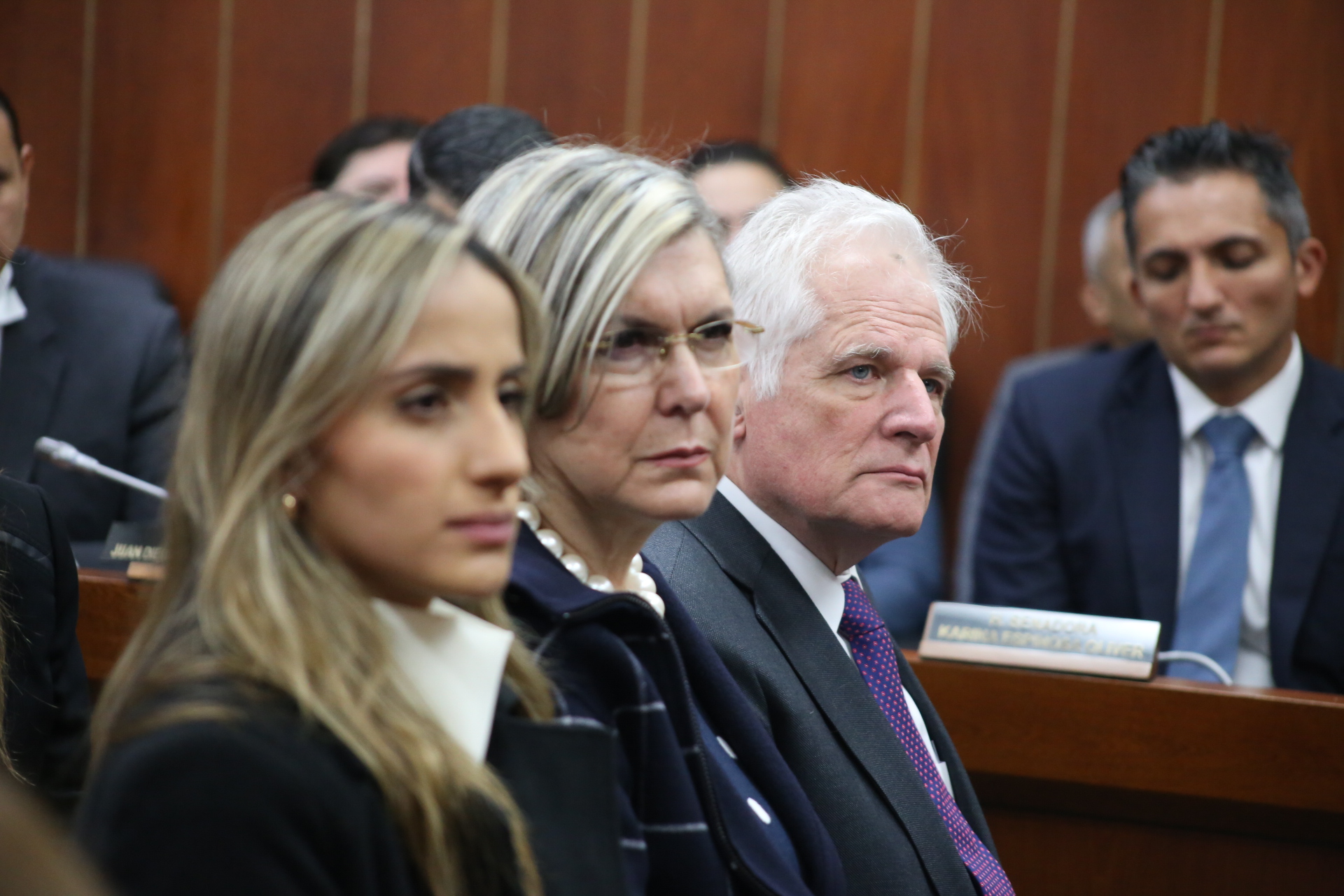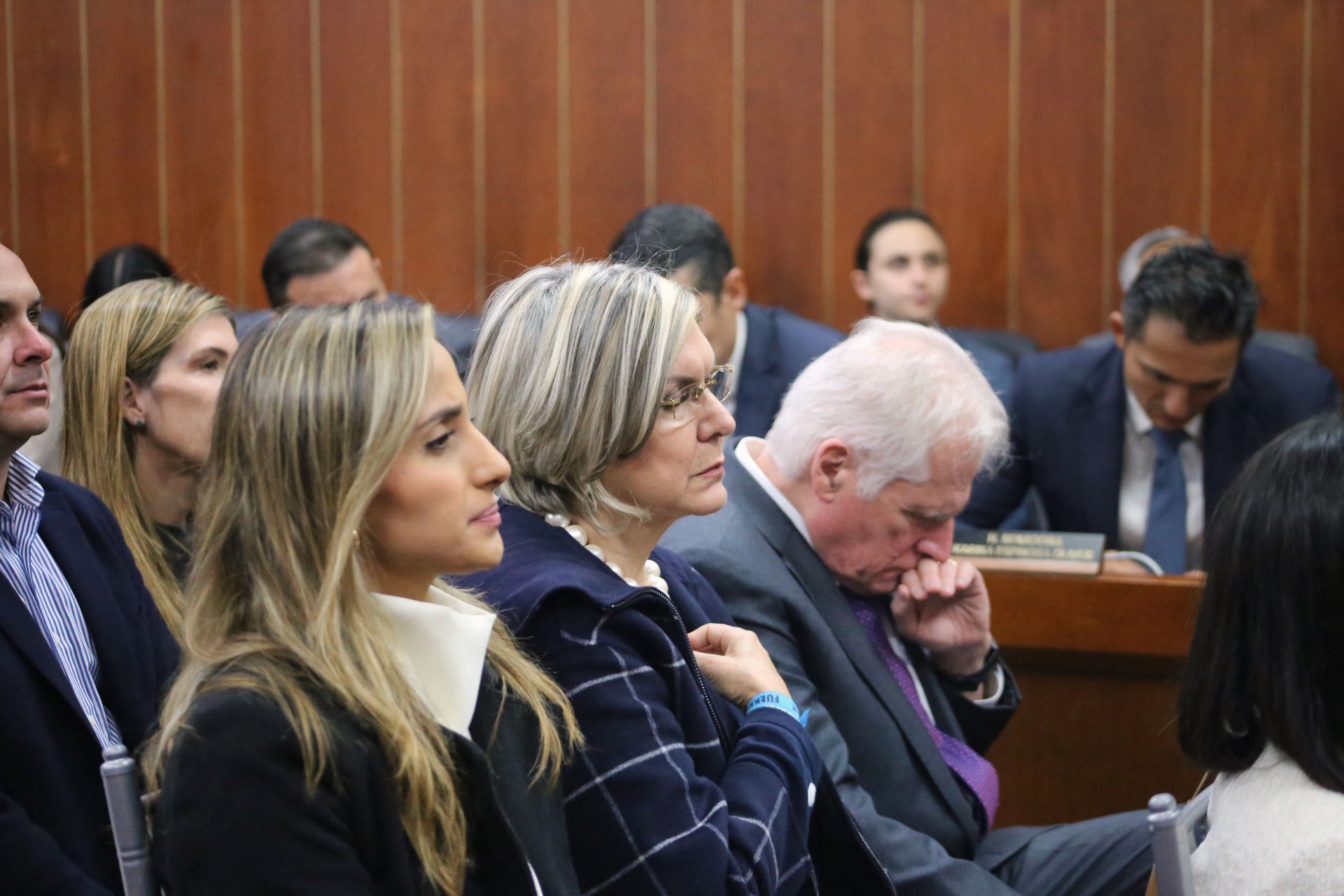 En el homenaje de este miércoles en la Comisión Tercera del Senado, la familia del Senador Uribe Turbay ocupó la primera fila de invitados. Asistieron la esposa del congresista, María Claudia Tarazona; la hermana del legislador, María Carolina Hoyos, y su padre, Migue Uribe Londoño, entre otros parientes.