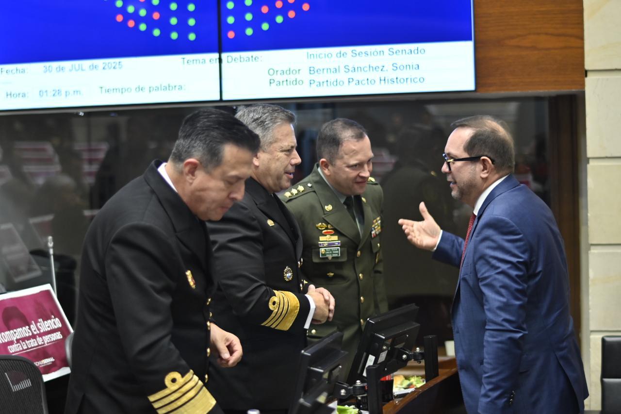 Bogotá, 30 de julio de 2025 (Prensa-Senado). - En sesión plenaria, el Senado de la República entregó condecoraciones y aprobó por unanimidad ascensos de oficiales de la Policía y la Armada Nacional, con asistencia del ministro de Defensa, Pedro Sánchez, y altos mandos de las instituciones.