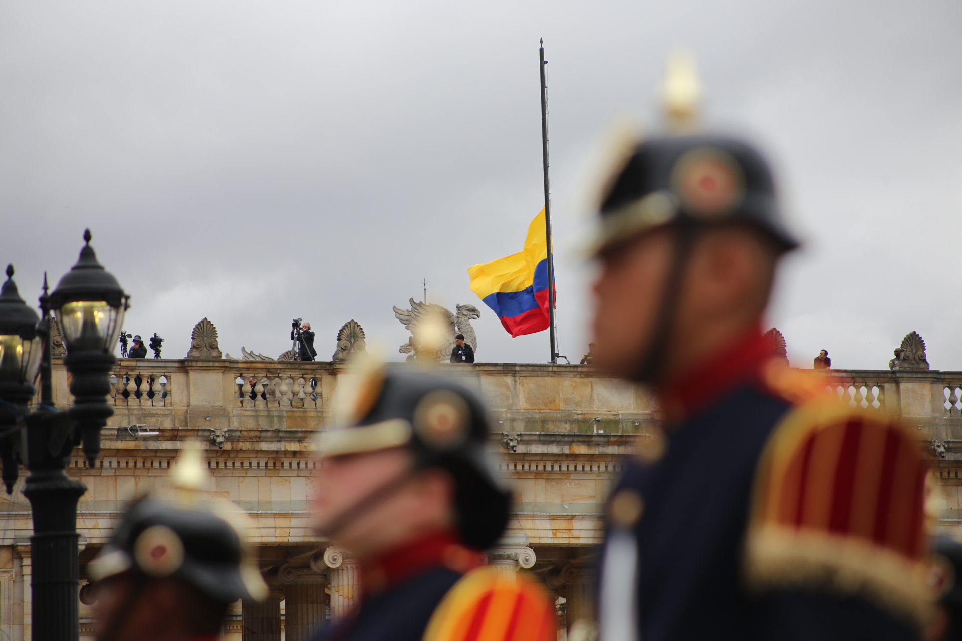 Después de lasalida de la Catedral Primada, en un gesto sorpresivo e histórico, el presidente del Congreso, Lidio García Turbay, tomó la bandera nacional que cubría el ataúd y la entregó, doblada con precisión, a la esposa de Miguel Uribe. Ella la sostuvo con ambas manos, mientras inclinaba la cabezacon señal de agradecimiento y sentimiento, ante la multitud presente en la Plaza de Bolívar.